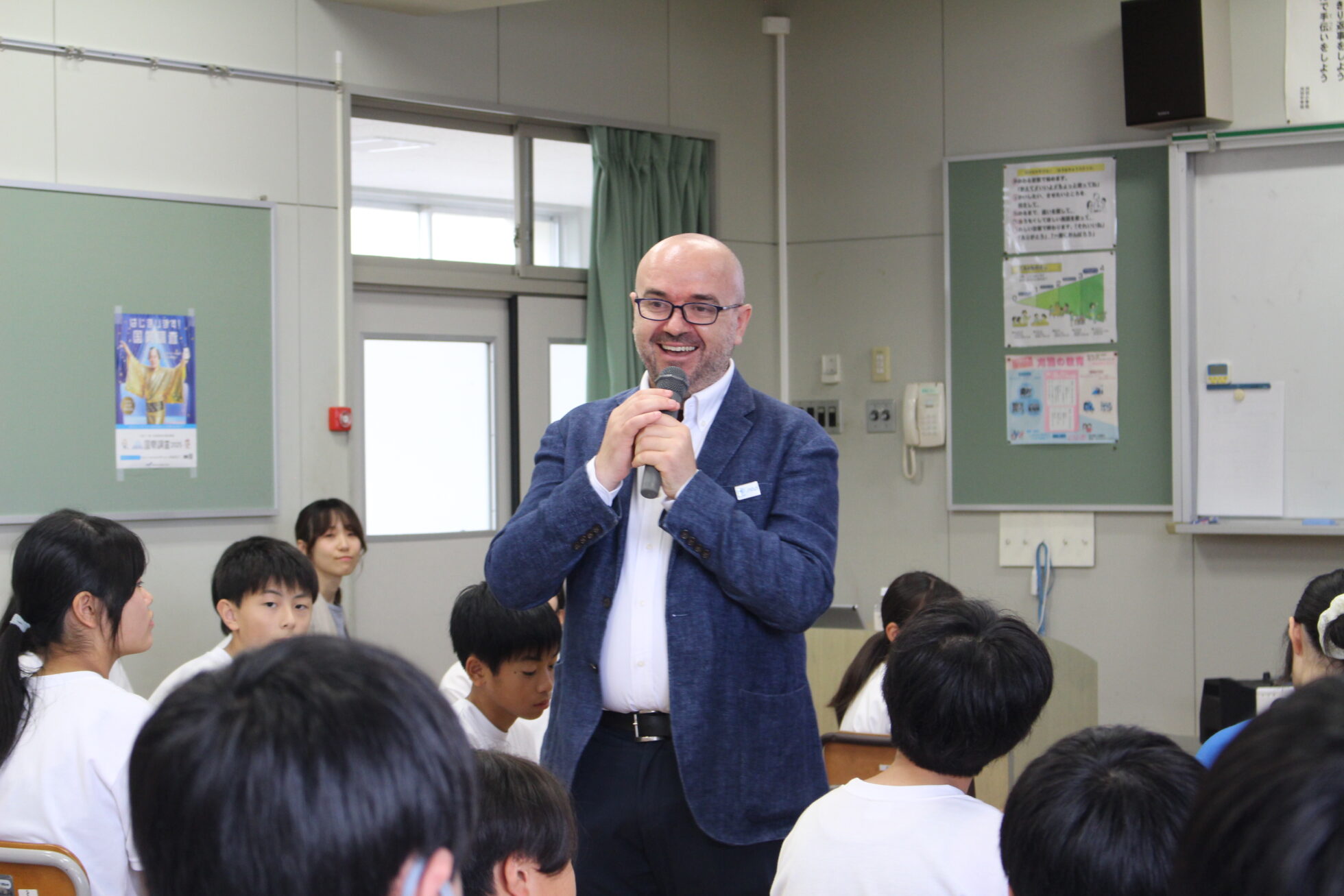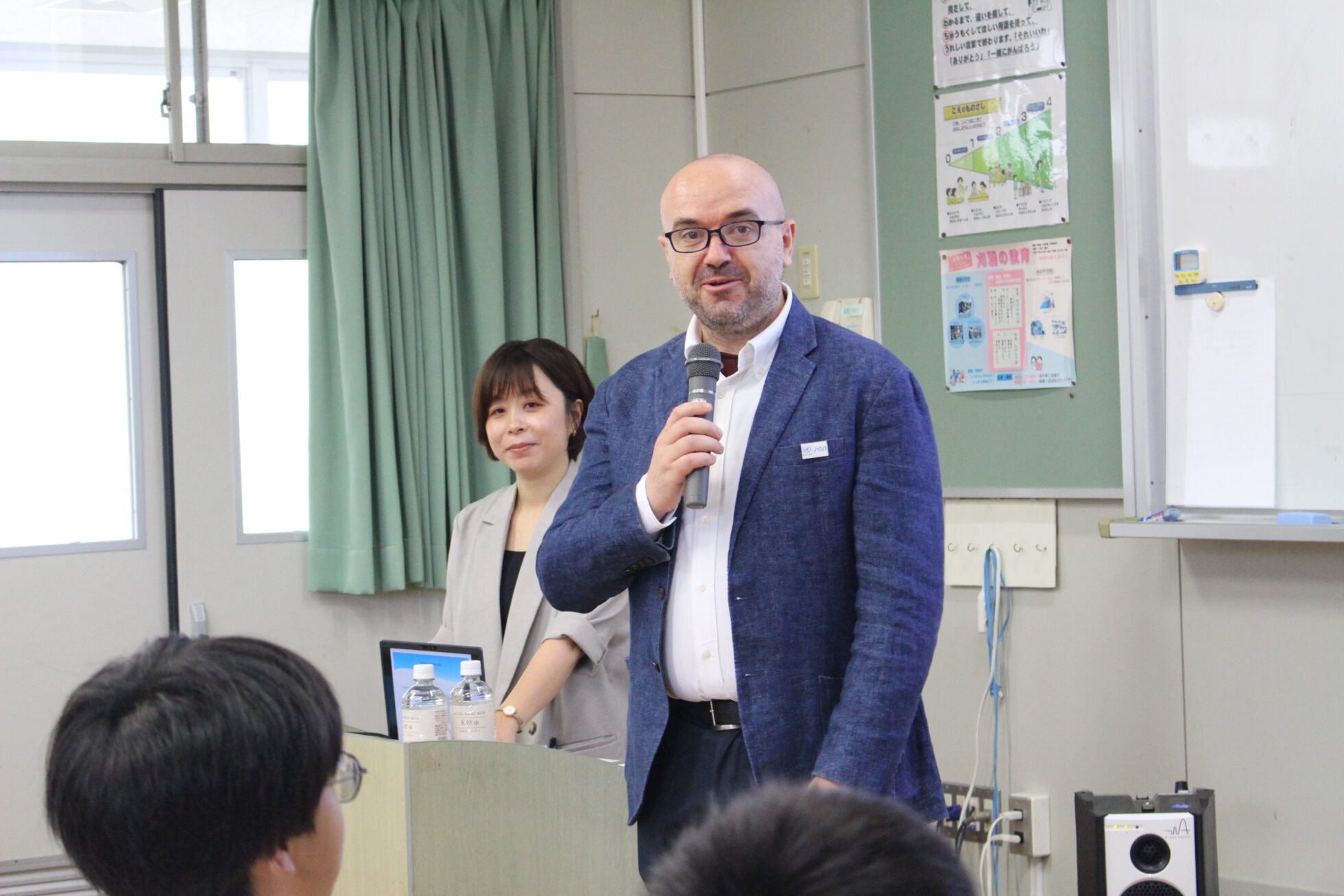 ソコールさんは、刈羽中学校の生徒たちに「SDGsの達成には、まだたくさんの努力が必要です。フードロスの削減や地元の海岸を守ること、そういった身近な地域やコミュニティでの取り組みが非常に大切です」と呼び掛けました。