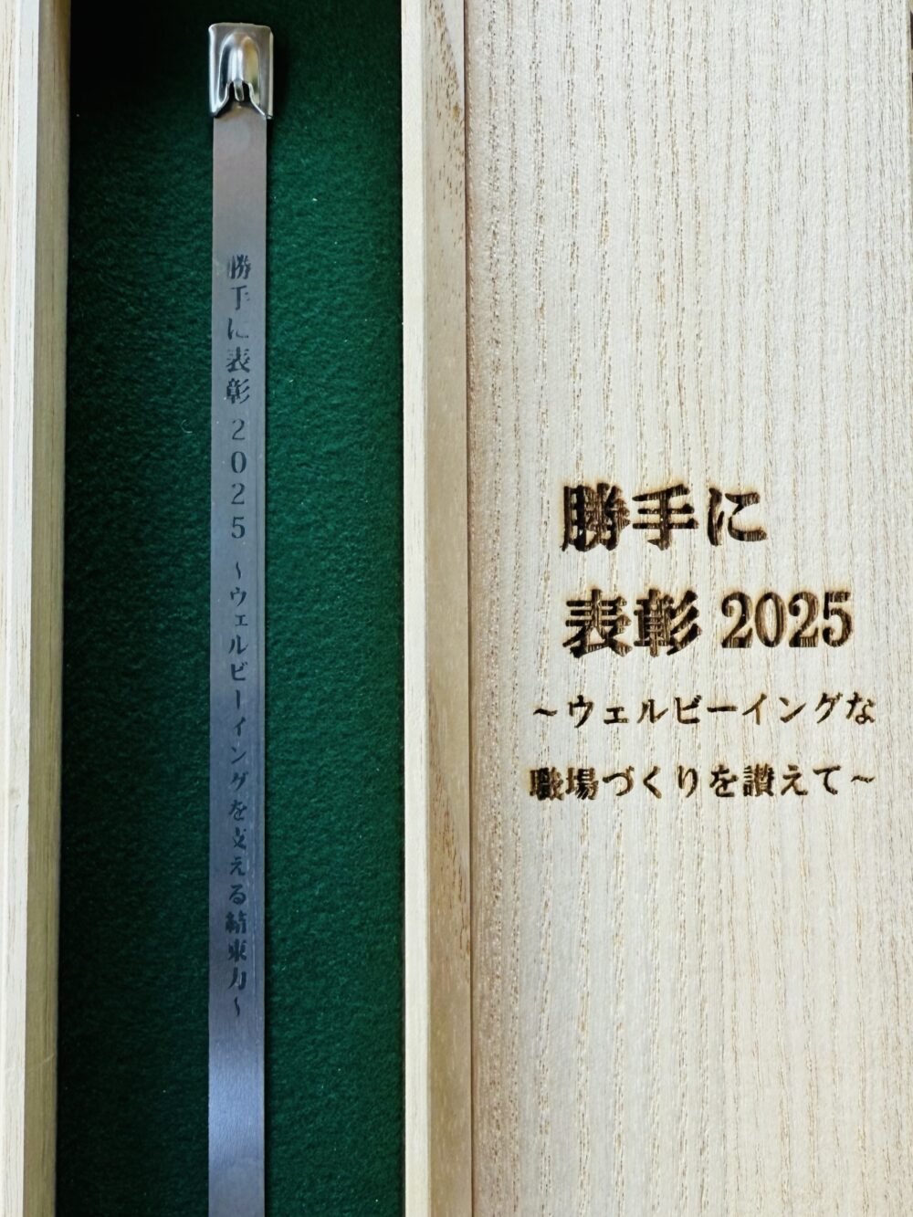今回選定された企業への賞状と記念品は、SDGsにいがたウェルビーイング分科会で検討・熟考を重ね檜の賞状と刻印したステンレスの結束バンドを授与させていただきました。従業員のウェルビーイング実現のために、これからも硬い結束力でこの新潟県、そして全国、世界に貢献する企業であり続けてほしいという願いを込めております。