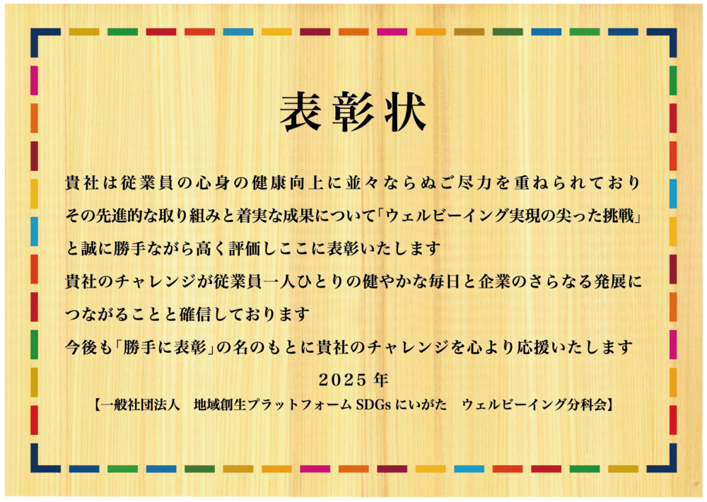 SDGsにいがたウェルビーイング分科会は従業員のウェルビーイング実現のために、素晴らしい取り組みをしている企業を“勝手に”選定し、表彰させていただくプロジェクトを実施してきました。